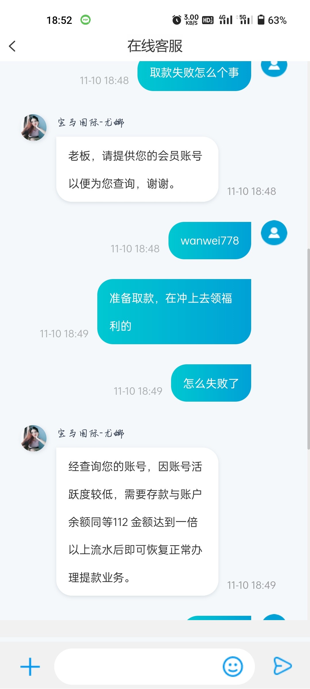 打电话给我送8.干到112不给出款,要充值同等金额打一倍流水,去他妈的