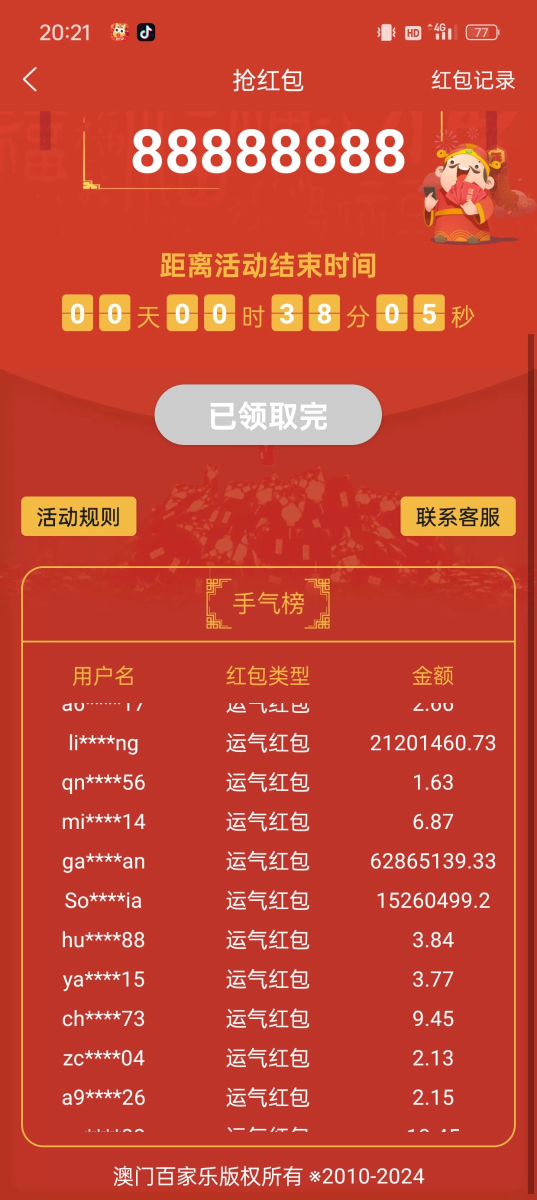 有个鸡把,几秒就没,最多几千的红包