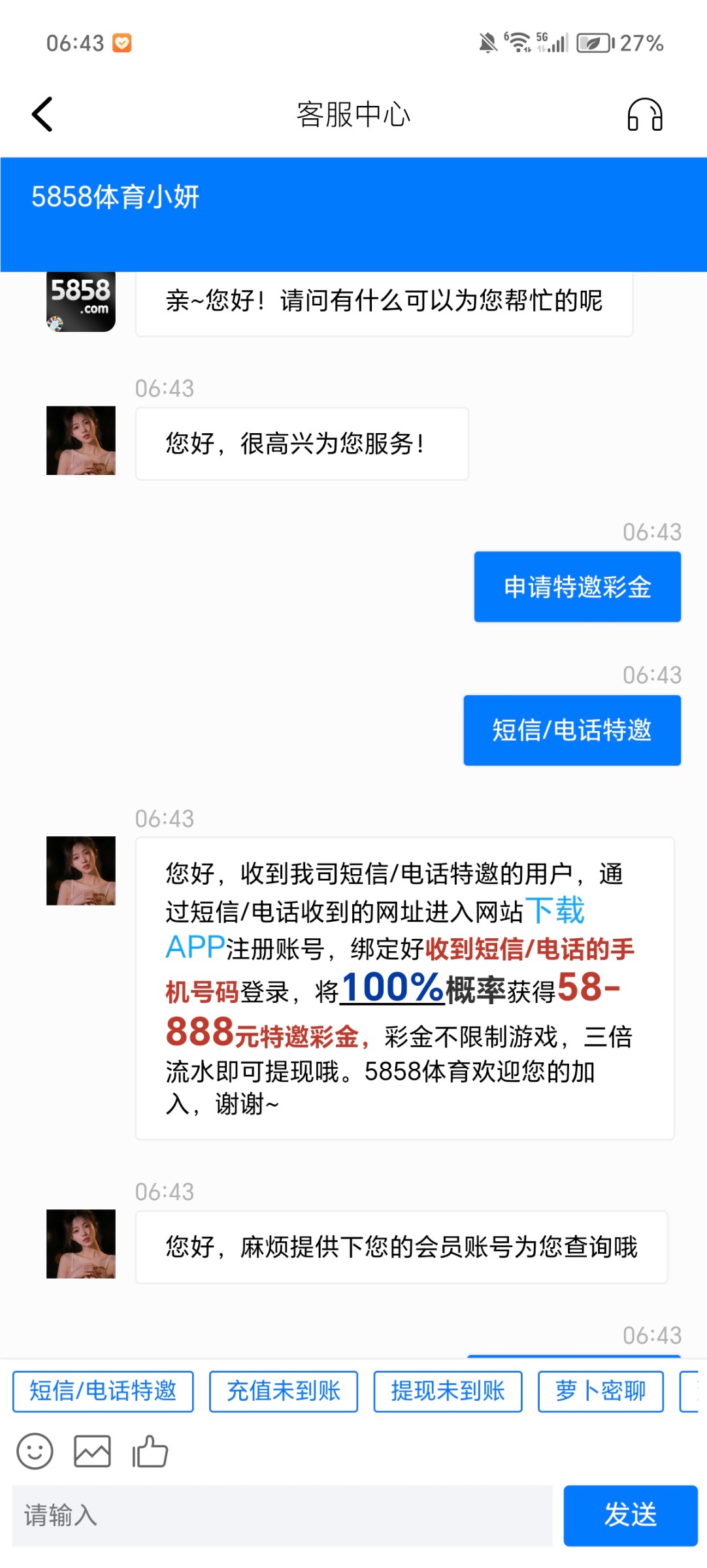 本站声明 1、本帖标题:5858体育特邀碰瓷秒58-888 提款已到账