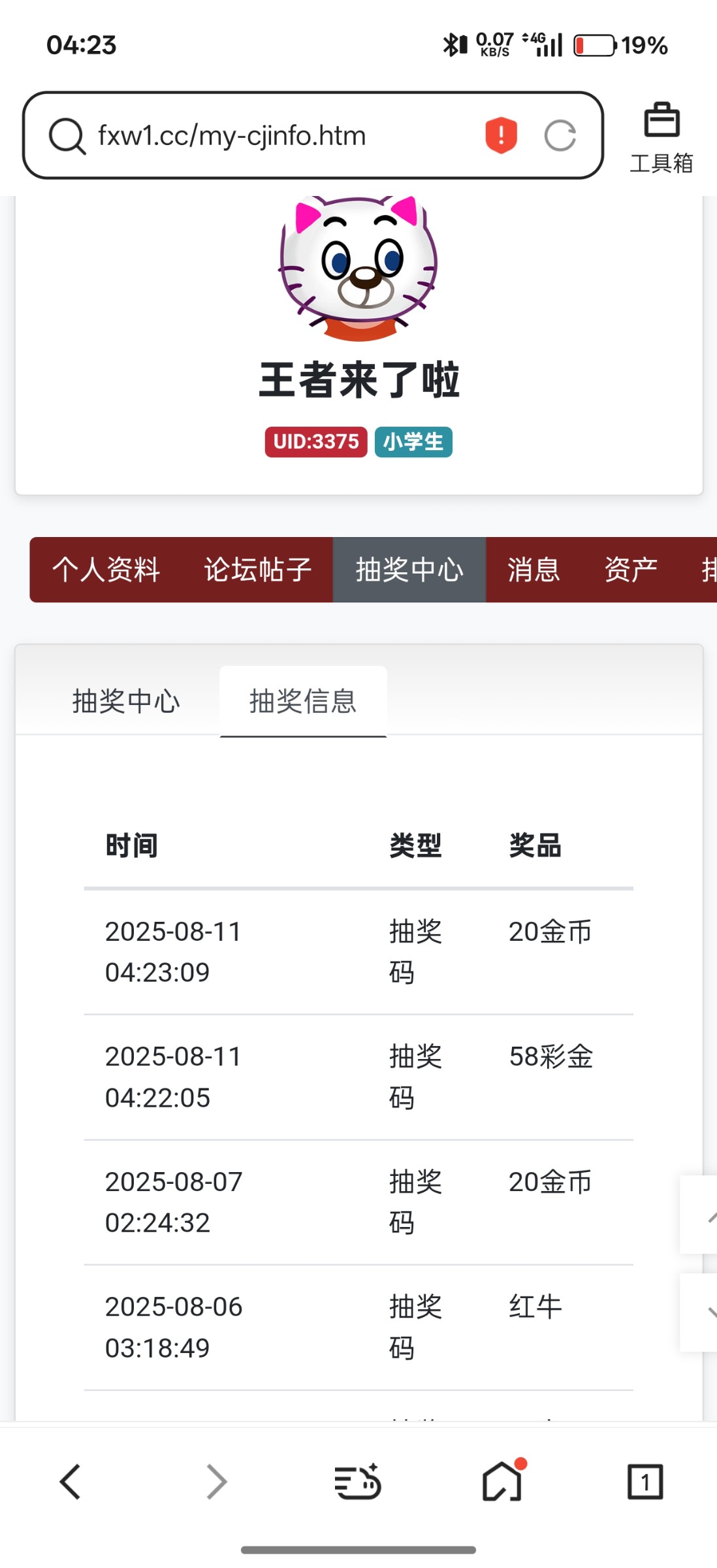 王者来了啦 抽中58彩金+红牛兑一下,非凡账号pm02468