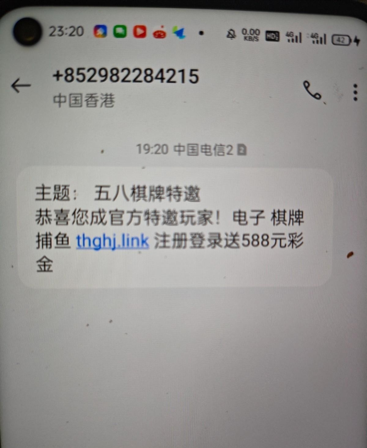 注册找客服领取短信特邀彩金,给了58,短信图在下面,收到这个短信的自己去,没收到就别碰了。只能打棋牌,祝老哥们都能打出来网址 thghj.link
