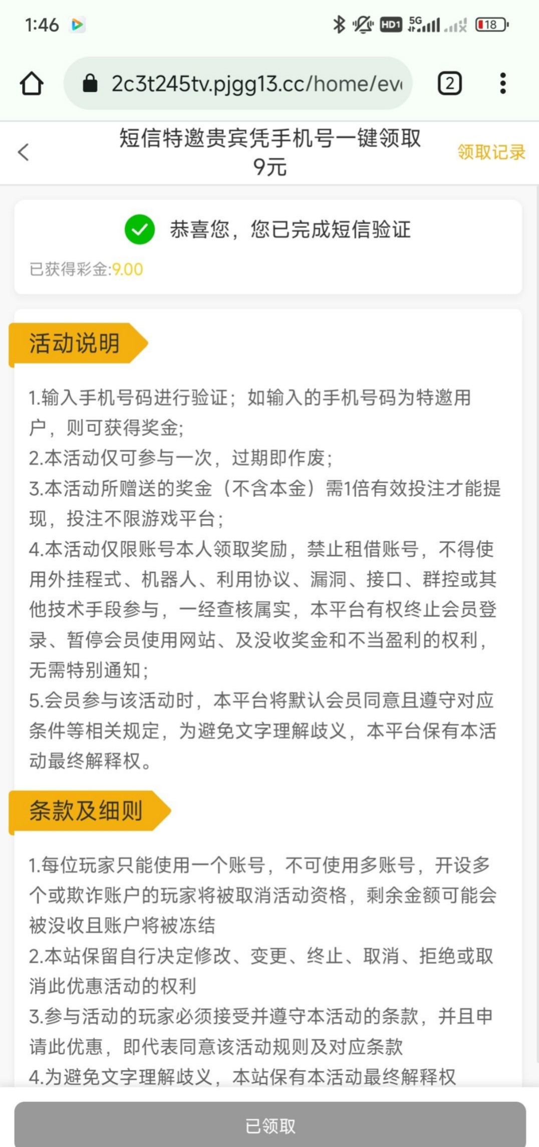 短信特邀自助彩金9