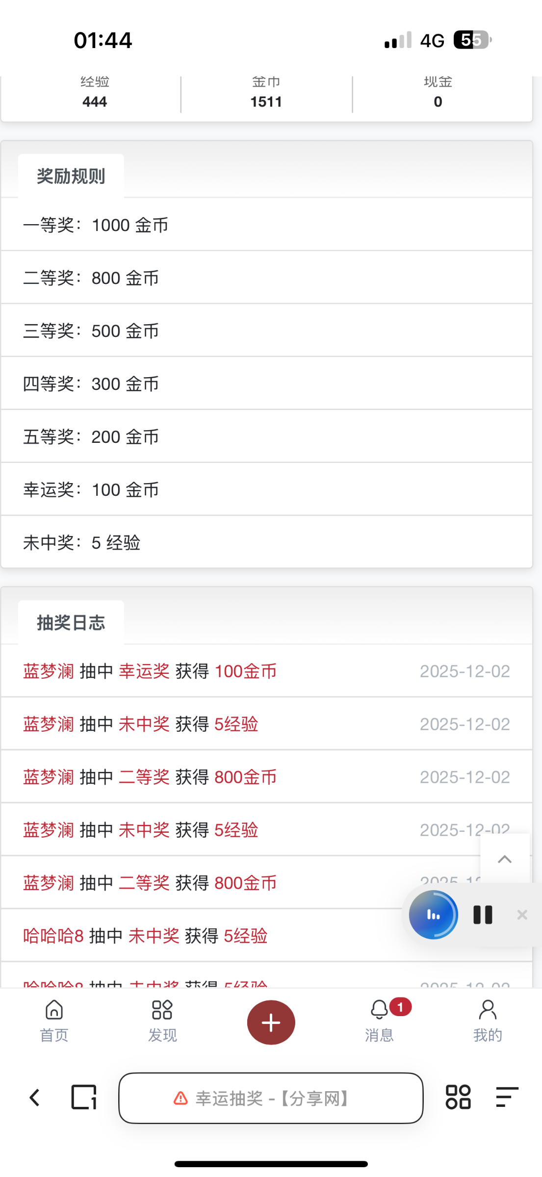 今天抽奖还可以啊,路人中奖金币派送一下