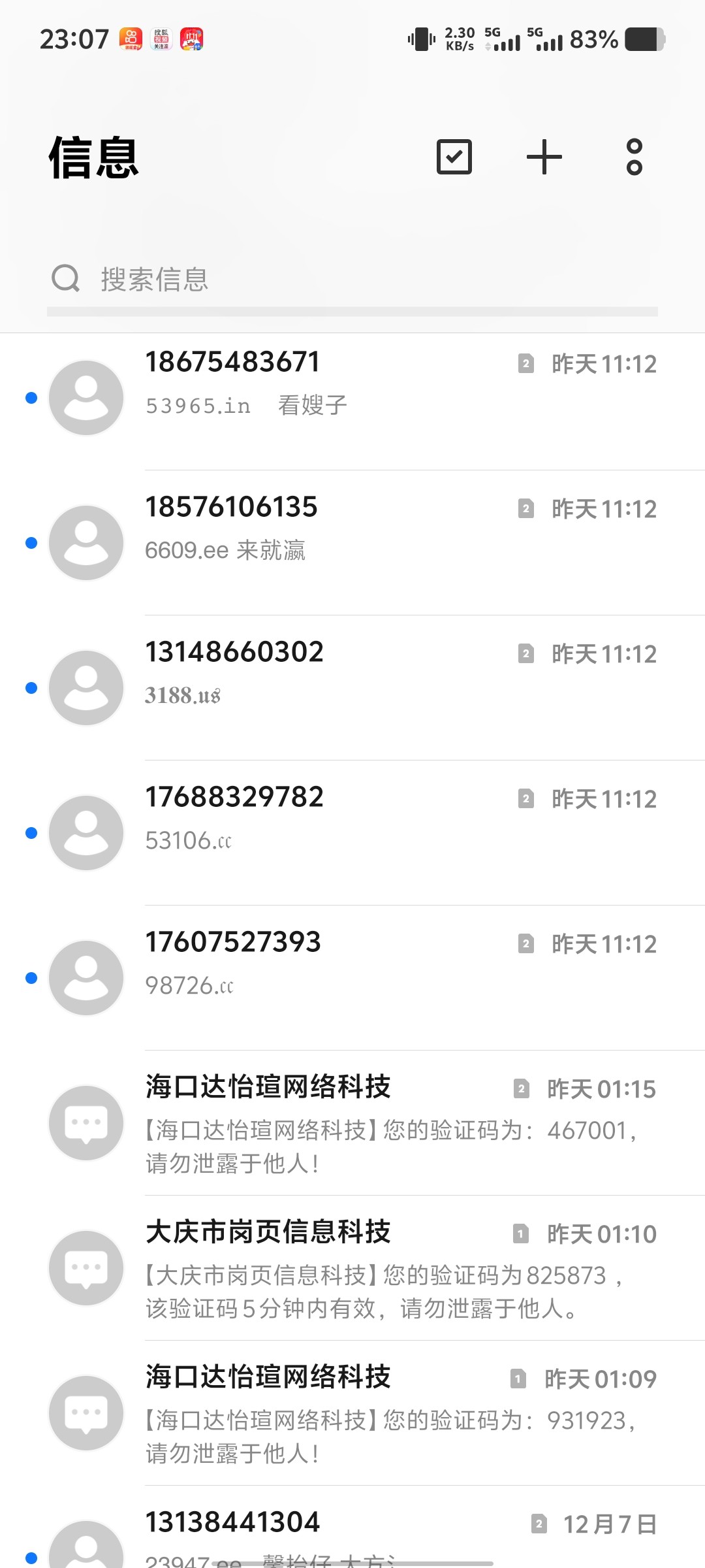 全部发的踏马的垃圾短信