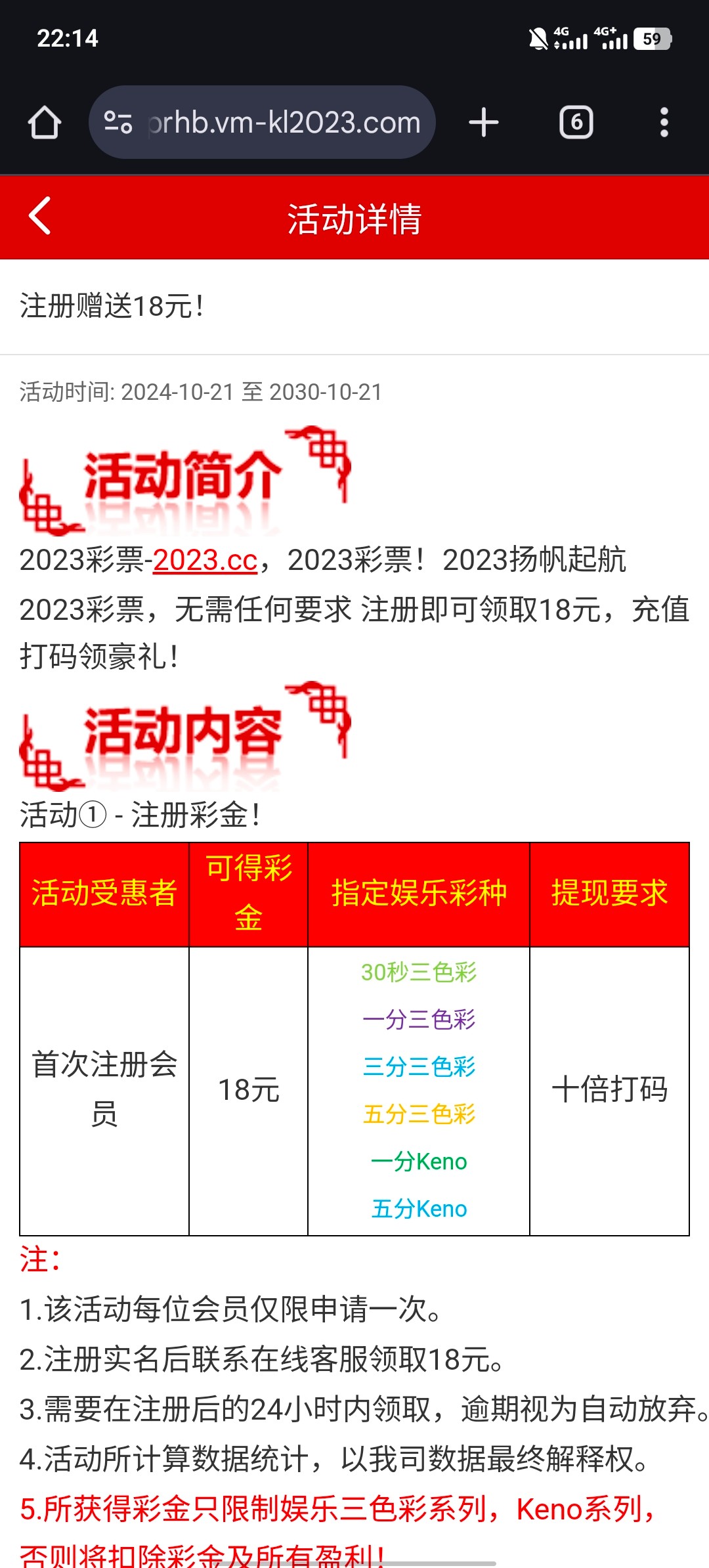 注册实名后联系在线客服领取18元 指定彩票类游戏 满100提现