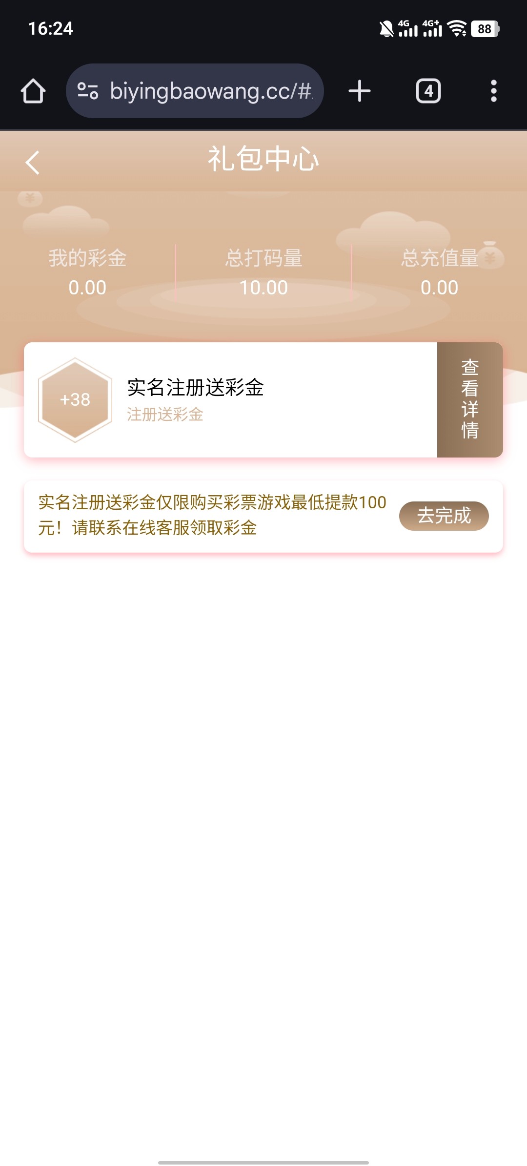 注册账号 绑定信息 验证手机号码 送10彩金 打到100提现 只能玩彩票