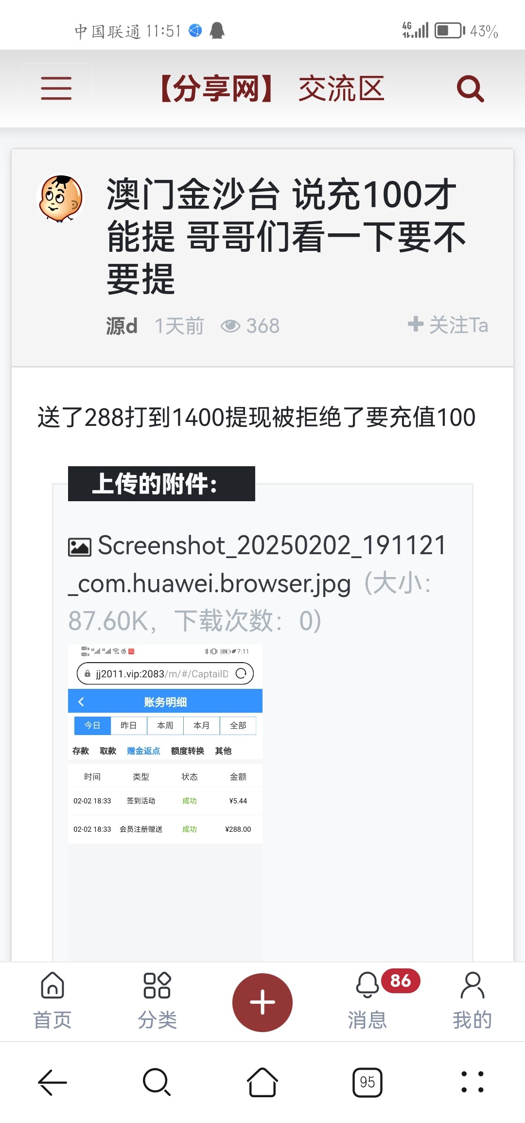分享网致力打造全网最大的白嫖论坛,与狗庄斗智斗勇,让海外各大平台公司头痛畏惧,我们打击了狗庄嚣张气焰破坏,狗庄国内生存环境做出一份力量,如他人需要请把我们的“家”分享给更多需要的老哥。