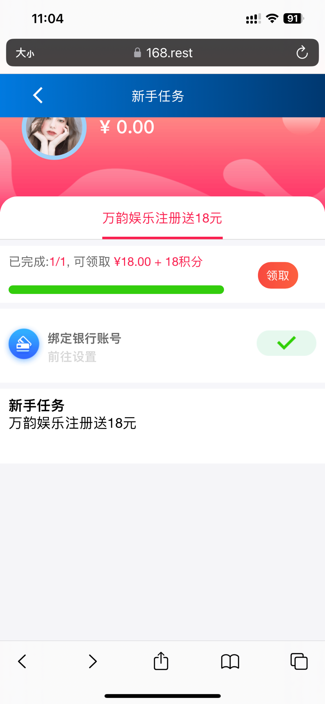 注册绑卡-会员中心-奖励中心领18,有延迟等几分钟再进去领,具体游戏限制进行询问客服,首发人多易黄