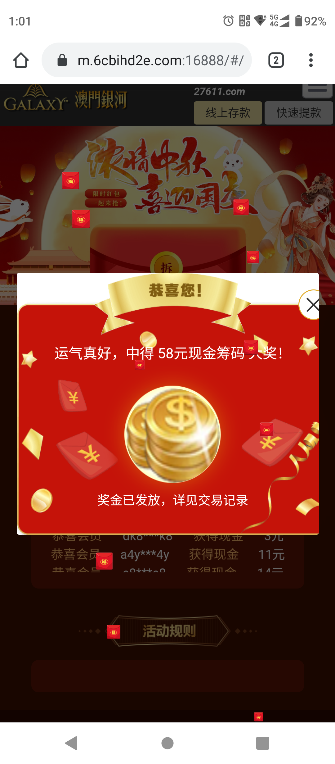 葡京,银河,三打哈这个几个台子中秋抽奖红包
