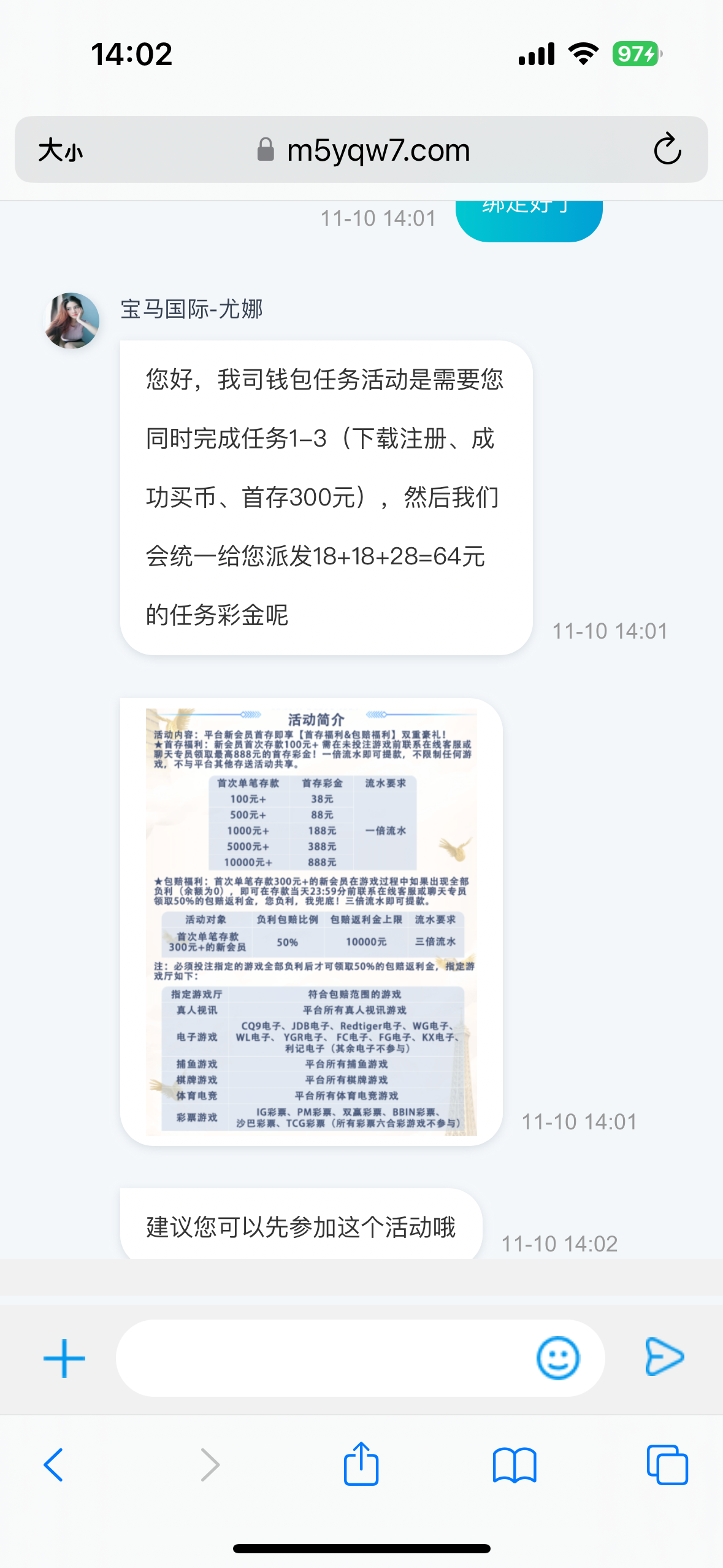 打电话给我送8.干到112不给出款,要充值同等金额打一倍流水,去他妈的