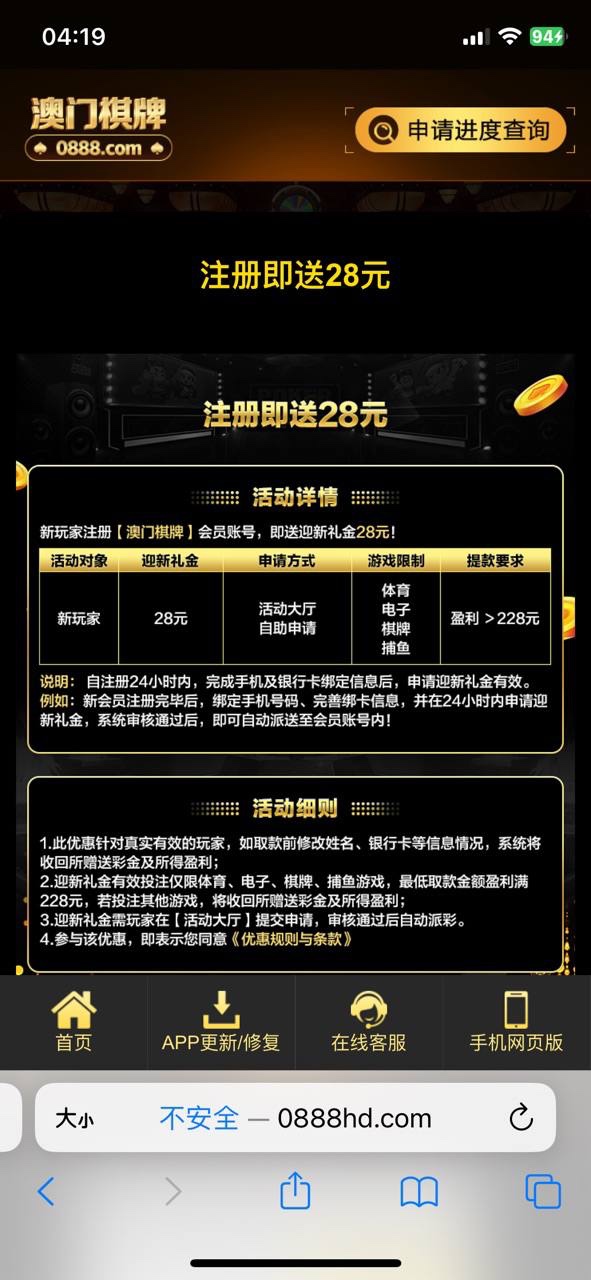 新用户注册完善资料,下方链接申请28彩金。