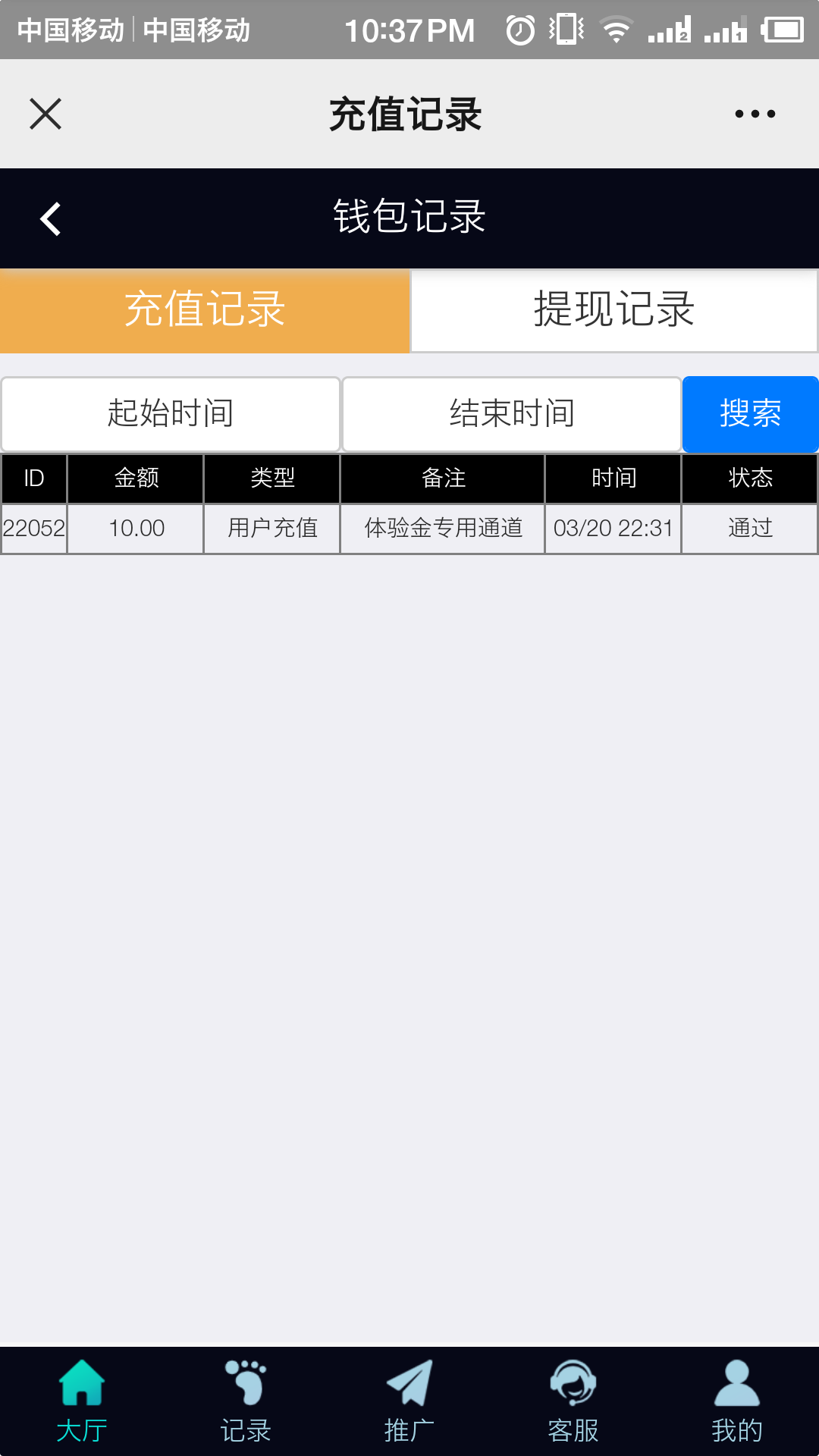 和万利h5一个样,微信扫码进去点击充值 选择体验金通道 输入10 然后点击提交等待到账 无游戏限制打到50元找在线客服兑换8.88元现金红包