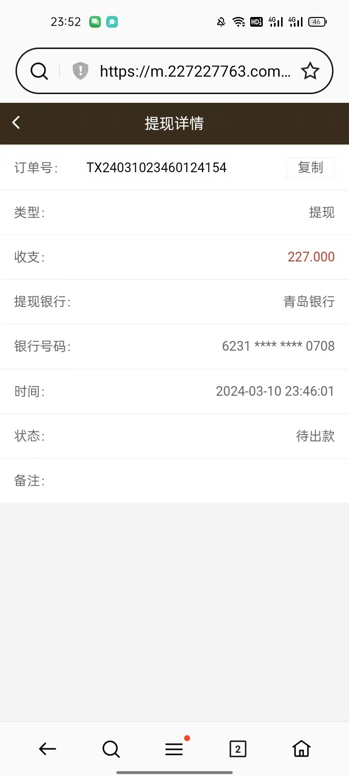 打到500多怕不给提,故意送到227。还要手持。拉胯,不要了