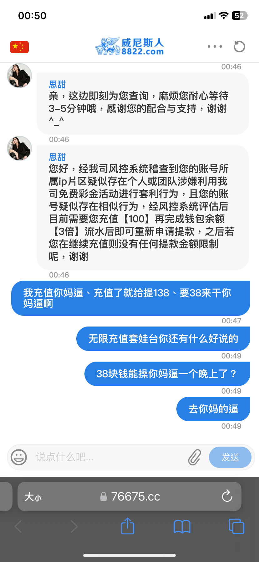 昨天冲了100提了188,刚才充了188打到300直接黑了,说风控审核注单,傻逼太子