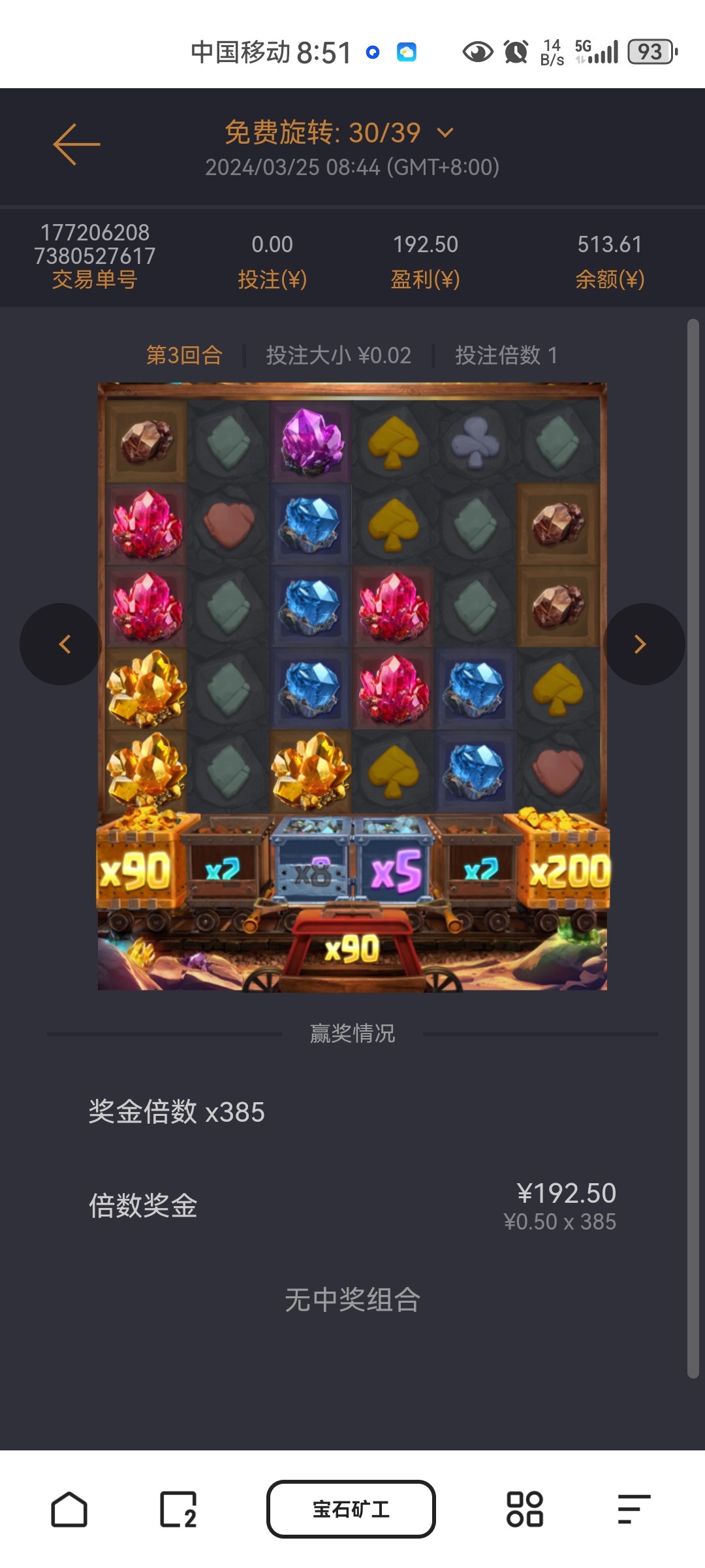冲100,拉了100次0.4,没有免费 买了一手,竟然来免中免中免40次。一下子掉了两个大倍数,直接打够100流水提了