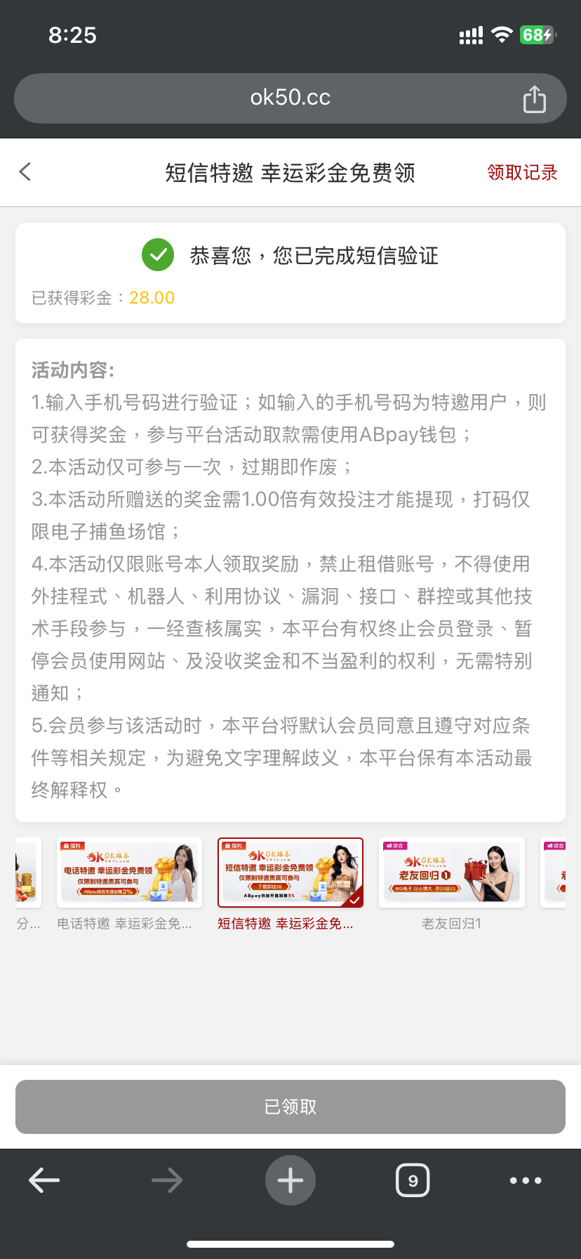 OK娱乐城 短信特邀28一倍水提款,前几天不是特邀注册了隔天变短信特邀