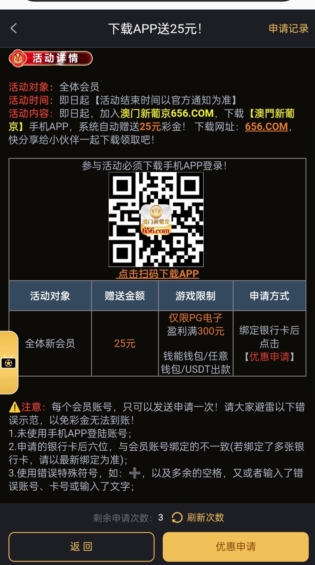 新用户下载APP自助申请25下载彩金,改模板了自己去试试吧。
