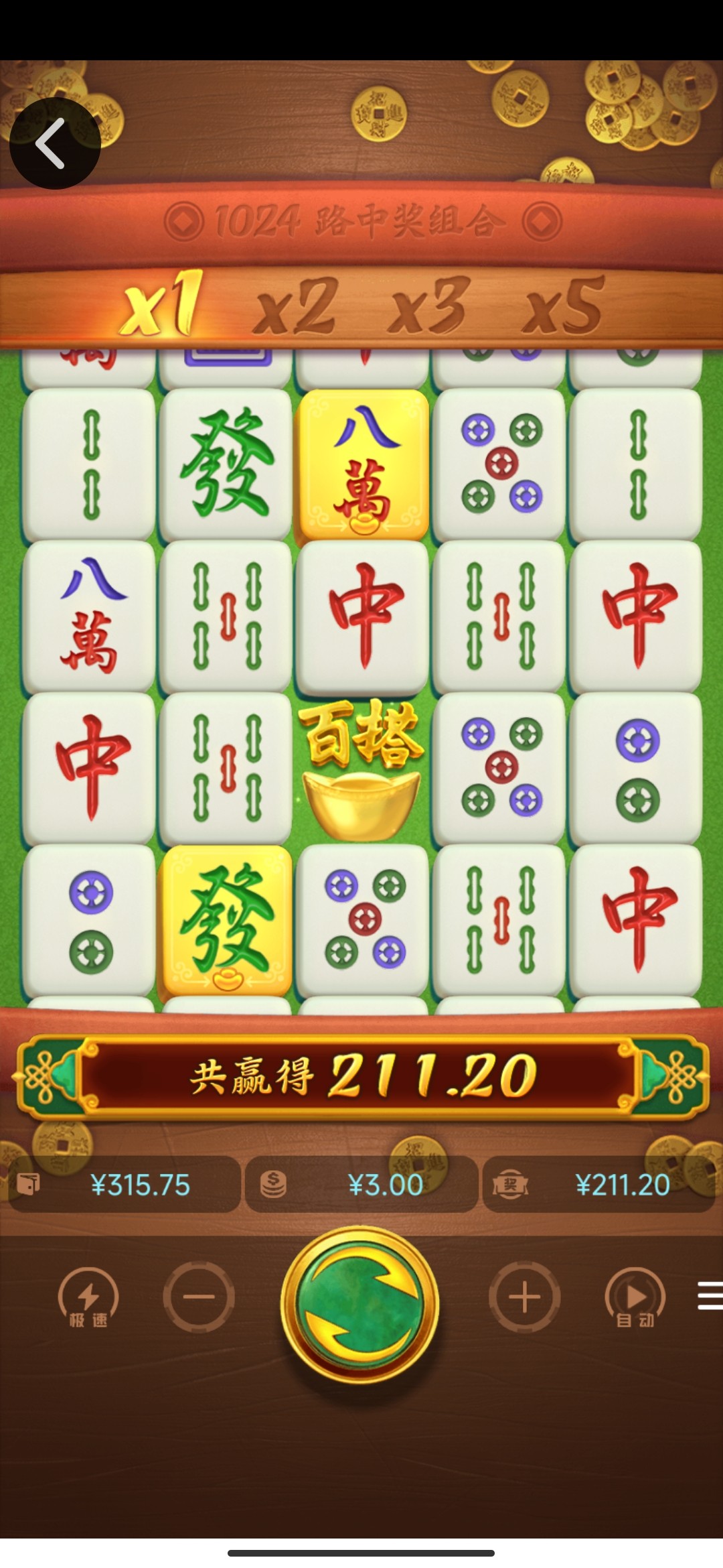 我这一次进了免费然后又来了两次三个胡,一共36次免费,勉强爆了319他妈的