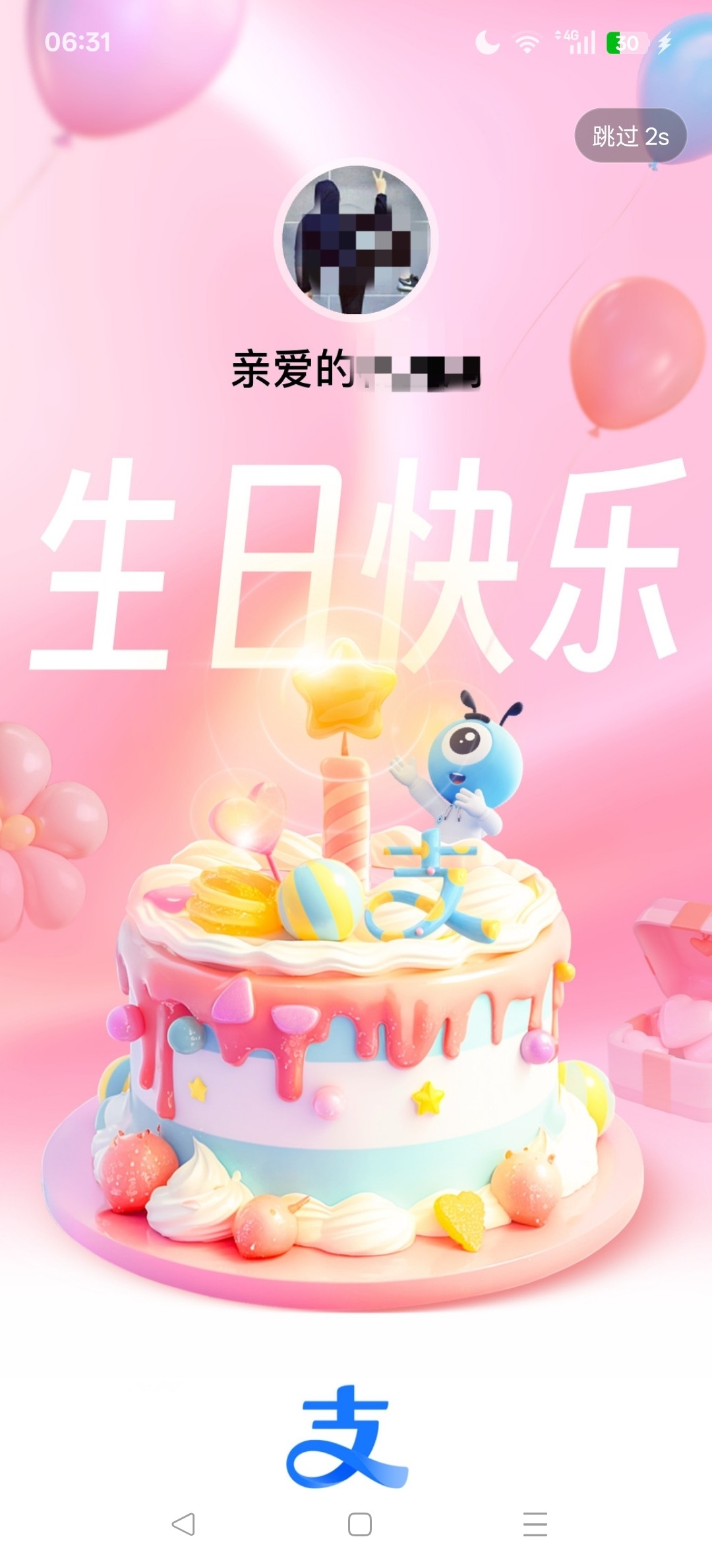早上起来的支付宝开屏祝福为证