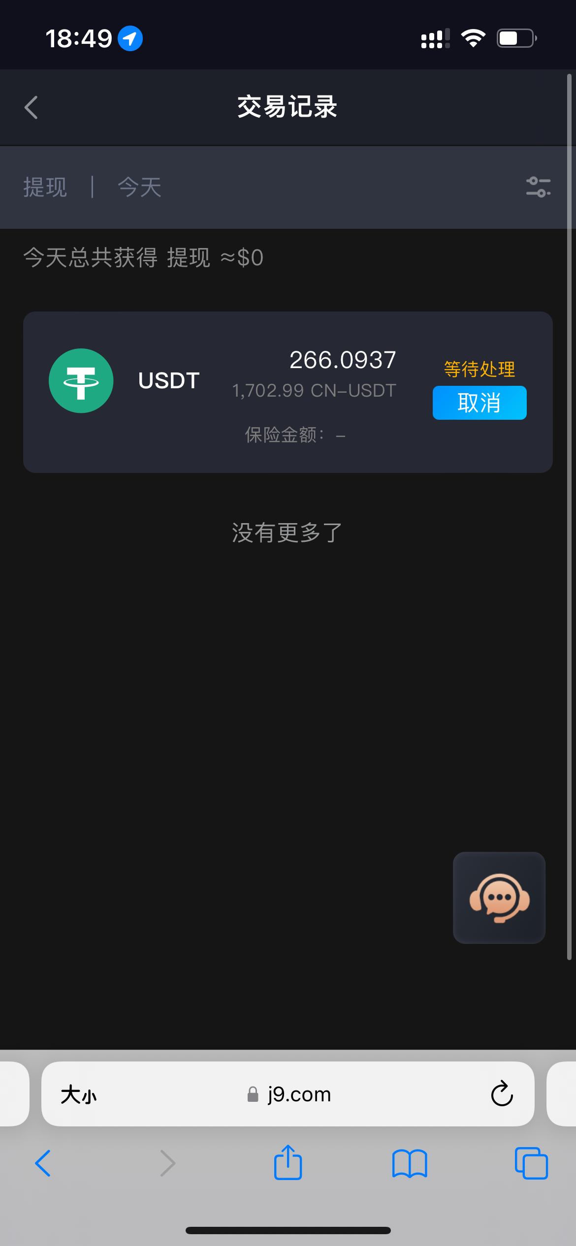 今天无聊去J9碰了一下瓷 9U打到200多u 提现几分钟 要打够彩金十倍水 还要充值20U提现 没注册的老哥可以去碰一碰 随便截图一个境外来电记录