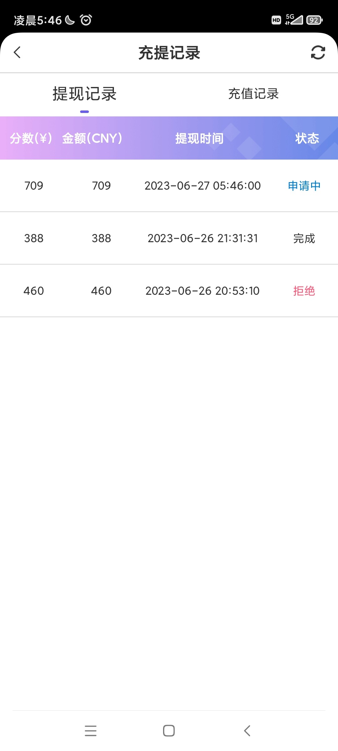 第一次出了460打电话核实信息然后退回重新提交,第二次100+100出了709