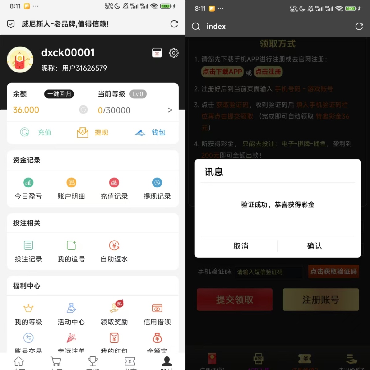 项目规则: 新老用户注册后点击优惠-短信特邀贵宾输入手机号碰瓷秒36元/十倍流水最低200提现。之前很早就发过,大部分人重新可以领取。