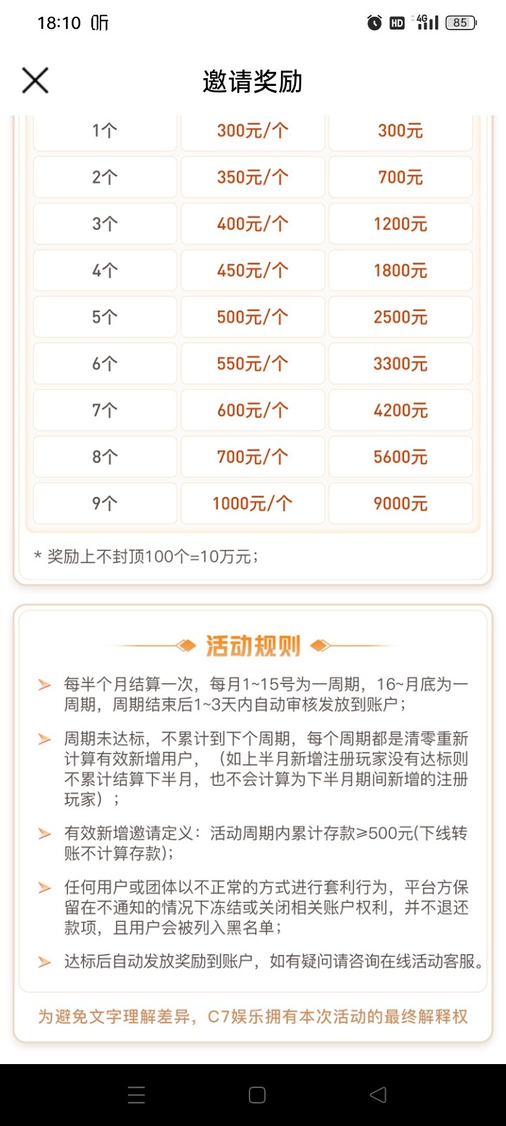 6月22号拉了一个人 c7不是拉人充值500有300块嘛 人也拉了 钱也充值了 不给拉人奖励300块 玛德 恶心